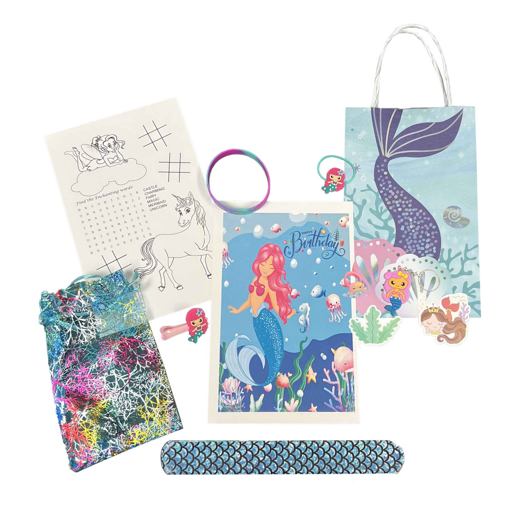 Swim into a sea of excitement with our Mermaid Mega Fun Favor Bag! Packed with undersea enchantment, this favor bag is a treasure trove of delights for your little guests. Bursting with mermaid-themed treats, toys, and surprises, it’s the perfect way to thank your attendees and send them home with a splash of joy.